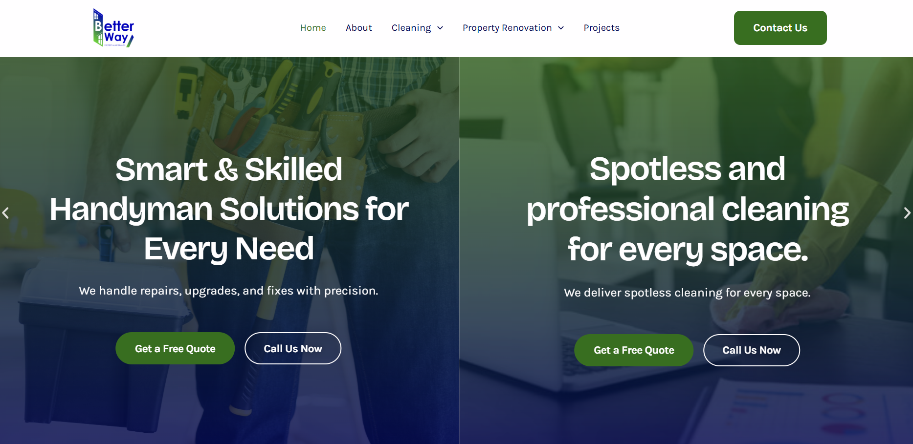 We created a professional, engaging website for Better way Solutions, showcasing their cleaning, renovation, and handyman expertise. Highlighting 25+ years of experience, eco-friendly practices, and trusted, insured services.